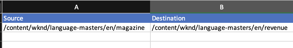 And select some random path into the Destination path: /content/dam/wknd/en/magazine
